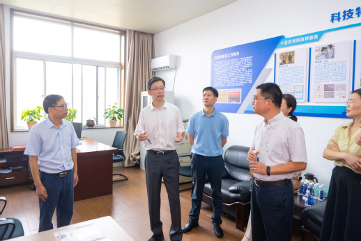 林志华在生物与环境学院大厅迎接陈强一行,对他们的到来表示热烈欢迎,并向他们介绍了学校历史沿革以及在人才培养、科技创新、社会服务等方面所取得的成绩。