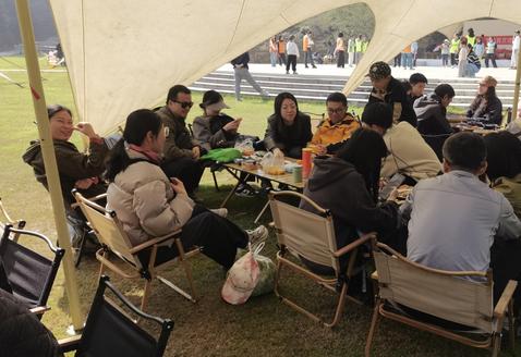 下午,活动氛围依旧热烈。教师职工们齐聚山庄天幕下,开启围炉煮茶与打耙活动。围炉旁,大家围坐在一起,畅谈工作与生活,在轻松惬意的氛围中增进彼此情谊;打耙活动则充满挑战与乐趣,大家瞄准目标啤酒瓶扣动扳机,现场不时响起阵阵喝彩声与欢笑声。
