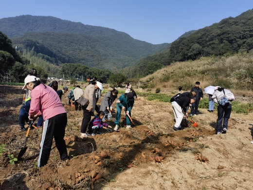 稍作休整后,上午的农田体验活动正式拉开帷幕。在农庄工作人员的指引下,教师职工们兴致勃勃地投入到“农田寻宝”挖番薯、割青菜的乐趣中。大家撸起袖子,拿起铁铲,在田间地头忙碌起来。大家相互交流着挖番薯的技巧,分享着丰收的喜悦,仿佛重拾儿时的童趣。