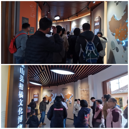 下午,活动场地转移至柑橘文化博物馆。在晓塘农文旅负责人的专业引领下,大家深入且细致地了解了象山柑橘的种植历史、品种演变过程以及“红美人”品牌的蓬勃发展历程。从古老的种植技艺到现代的品牌打造,每一处细节都彰显着乡村振兴中的农业智慧与深厚文化传承,让教职工们收获颇丰。