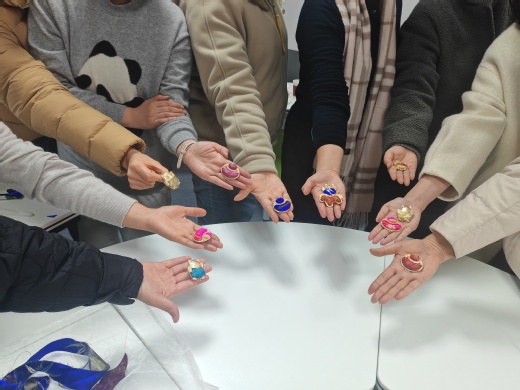 在随后的“手艺时光”环节,大家一同体验了“宋锦”制作工艺。在精心制作中感受非遗文化的独特魅力与工匠精神的宁静致远。一件件精美的宋锦作品在大家手中成型,不仅展现了女教职工们的心灵手巧,更寄托了大家对美好生活的热爱与向往。