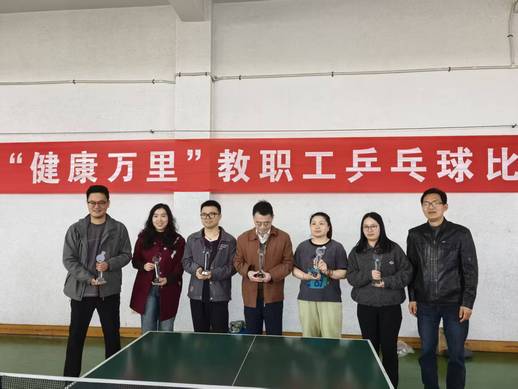 2026年4月1日,浙江万里学院教职工乒乓球比赛圆满落下帷幕。物流与电子商务学院经过前期报名,确定了谭卫平、周志丹、丁雪峰、周廉东、窦清、方稚淇、祝凌瑶、潘巧虹、黄袁凯、高雨晨十位老师代表学院参加团体赛和个人赛。在这场汇聚了全校教职工乒乓球高手的激烈角逐中,物流与电子商务学院教职工代表队凭借出色的发挥和顽强的拼搏精神,在多个项目中斩获佳绩,为学院赢得了荣誉。