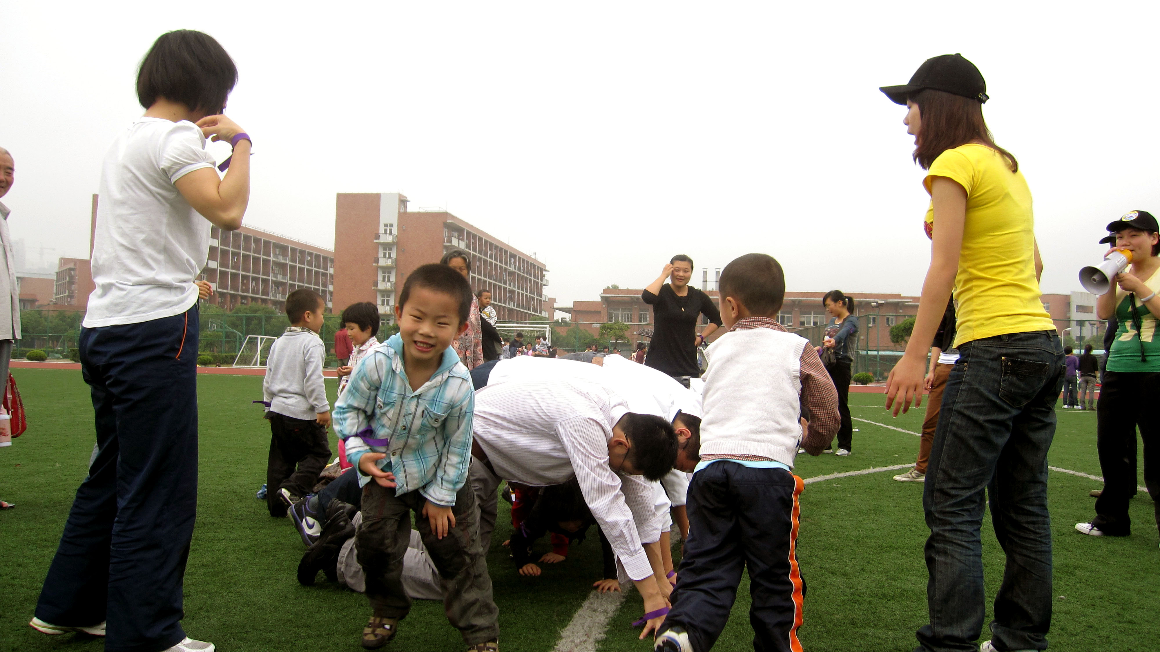 5月29日,浙江万里学院工会青工委举办的“六一亲子嘉年华”活动在钱湖校区运动场举行。纪委书记、工会主席陈建荣出席活动现场并致辞。他表示,举办此次活动旨在服务万里的孩子们在万里这个大家庭里快乐成长,同时也给万里教职工搭建一个交流沟通的平台,让万里的每一个家庭都能和谐快乐。     首届“六一亲子嘉年华”活动共有85对教职工子女参加,按孩子年龄段划分出9个团队。活动开始前,猴子和袋鼠的开场舞吸引了所有小朋友和家长的视线。小朋友和家长们跟着袋鼠、猴子一起跳起了欢乐舞,“六一亲子嘉年华”活动就在这欢乐的气氛中拉开帷幕。每个团队的孩子和家长跟着各自的领队参加滑板百米赛、过河石、叠叠高、亲子彩绘、拔河比赛、三人四足、袋鼠跳、软式棒球赛、彩虹伞等10多个游戏项目,每个游戏项目均要求孩子和家长们共同完成,每次活动获胜的小朋友都可以获得一个可爱猴子贴。     在亲子彩绘环节中,小朋友们都发挥了自己的超级想象,给爸爸添个小胡子,给妈妈画朵花,在爸爸妈妈脸上、手臂上都画上了自己平时最拿手的画儿。家长们也在孩子脸上绘上五彩斑斓的一笔,很多家长玩得比孩子更投入。除了彩绘,孩子们最喜欢的是彩虹伞,坐在一朵大大的彩色伞里,家长们拉着伞的每个角使劲跑动,整个伞随之飞舞起来,孩子们在里面一个劲的欢呼,玩了一遍又一遍,家长们则是既开心又累得慌,整个嘉年华活动现场充满着欢声笑语。     此外,2010“六一儿童节”期间,万里学院工会还为全校509名儿童发放了新华书店购书券,以让孩子们能在书的海洋里自由翱翔。